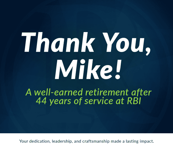 After 44 years with RBI, we’re proud to celebrate Mike Fadeley’s retirement and recognize his lasting impact through exceptional workmanship, leadership, and care for customers and teammates.